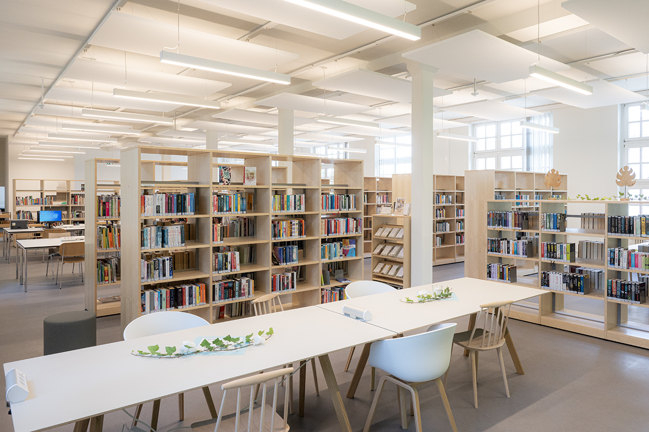 - kostenlose Internetplätze, freies WLAN und viele Arbeitsplätze mit Steckdosen laden zum Lernen und Recherchieren ein