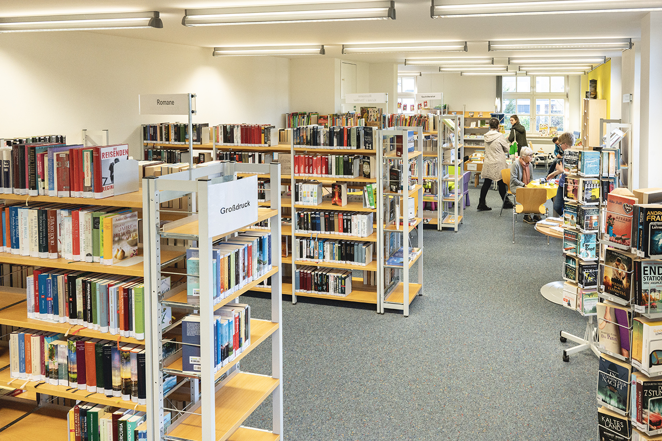 - Romane, Krimis und Sachliteratur zu unterschiedlichen Themen – darunter aktuelle Romane der Spiegel-Bestsellerliste. Ein Teil wird auch in Großdruck angeboten.
