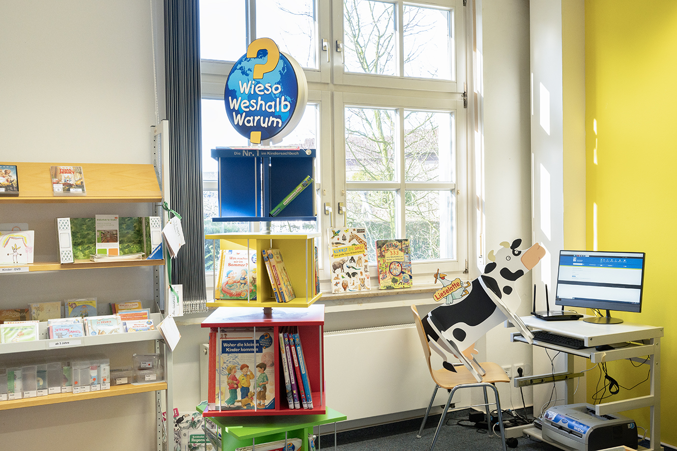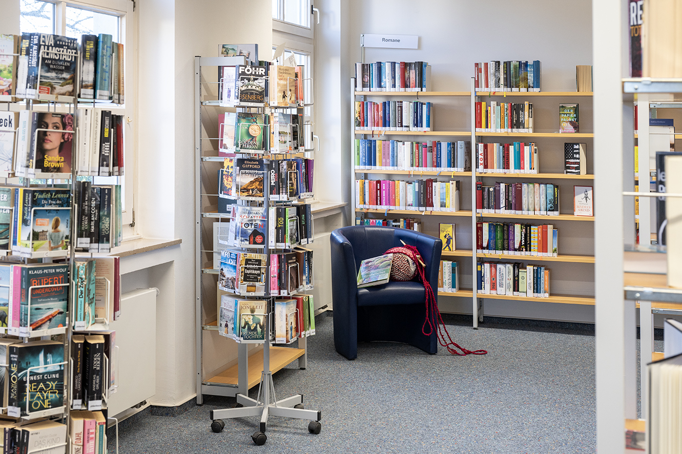 Unsere Stadtteilbibliothek verfügt über gemütliche Leseecken und Polster, die zum Bleiben und Lesen einladen. Direkt vor Ort zum Schmökern oder zur Ausleihe stehen ca. 10.000 Medien bereit. Durch kostenfreies WLAN ist auch der Zugang zu unserem e-Angebot jederzeit möglich.